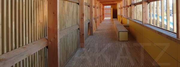 Lattes de 40x120x2000mm posées verticales entre les quais. Inauguration ce 9 decembre 2018.